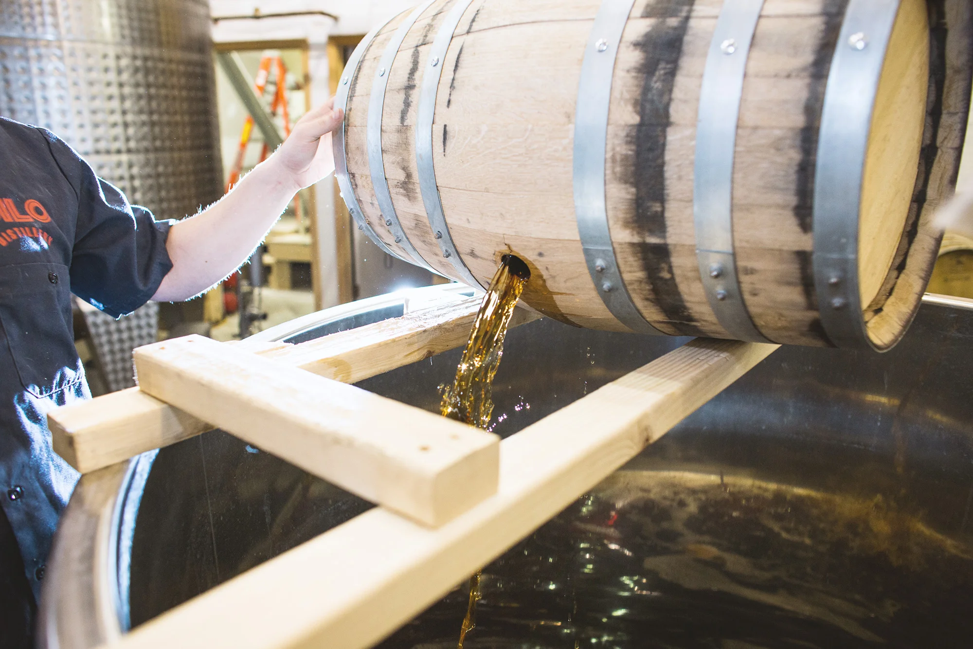 We aged our classic and smooth gin in bourbon barrels for a light kiss of woody sweetness and char. This spirit melts across the palate; bringing out the steeped apples and giving the juniper berries a new dimension.